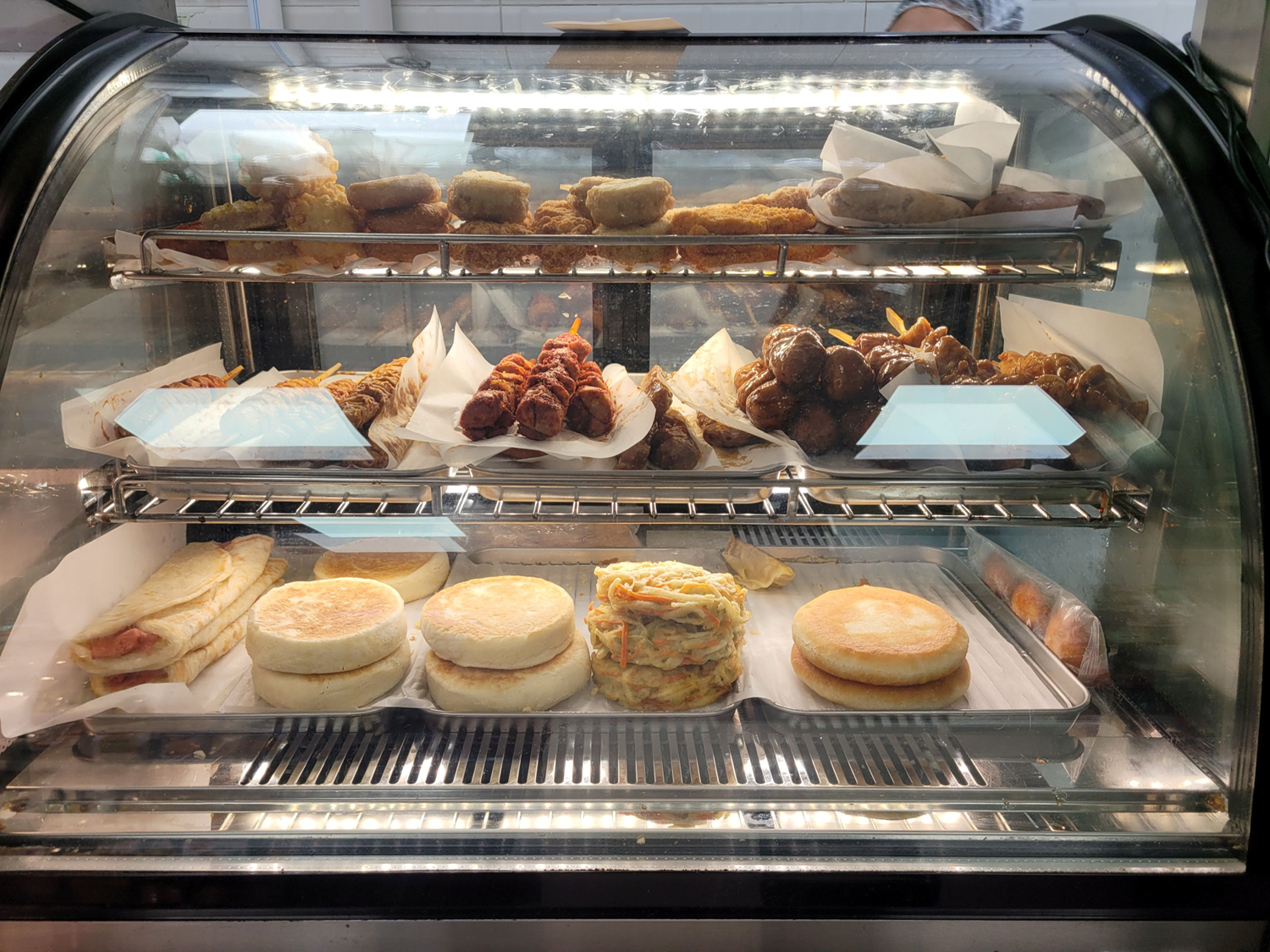 그중에서도 가장 눈에 띈 것은 즉석식품 코너였습니다. 일본 편의점만큼이나 종류가 다양했는데, 간단히 식사 대용으로 먹을 수 있는 음식부터 간편한 빵, 핫바 등까지 종류가 많아 골라 먹을 수 있었습니다.