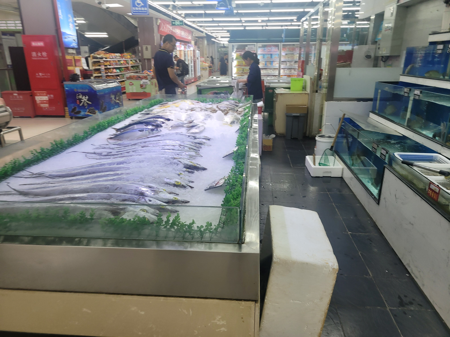 대형마트/할인점의 전형적인 특징 중 하나는 입구에 신선식품, 특히 과일을 배치한다는 점인데, 중국 역시 마찬가지였습니다. 매장에 들어서자 과일과 채소가 진열되어 있었고, 이어 수산물과 즉석식품 코너로 연결되었습니다.