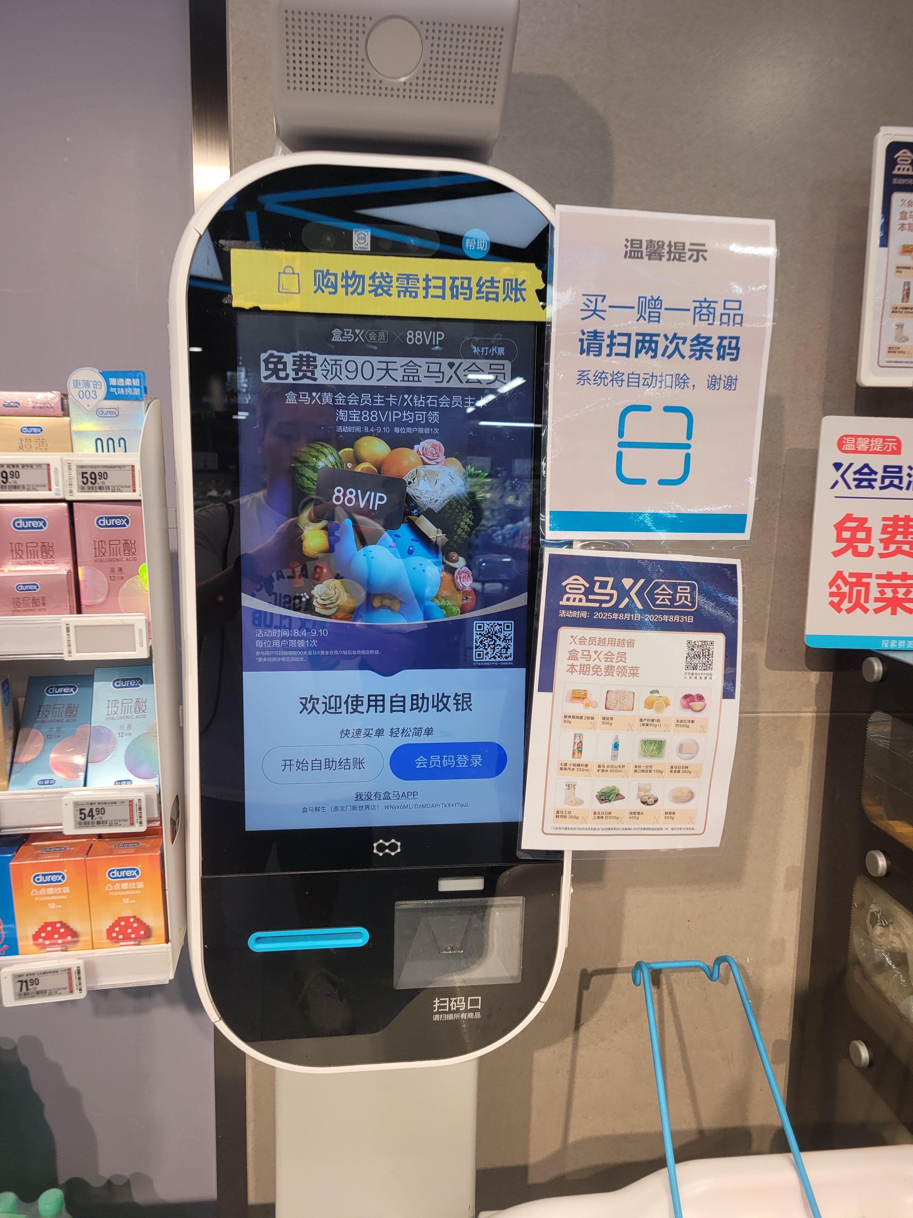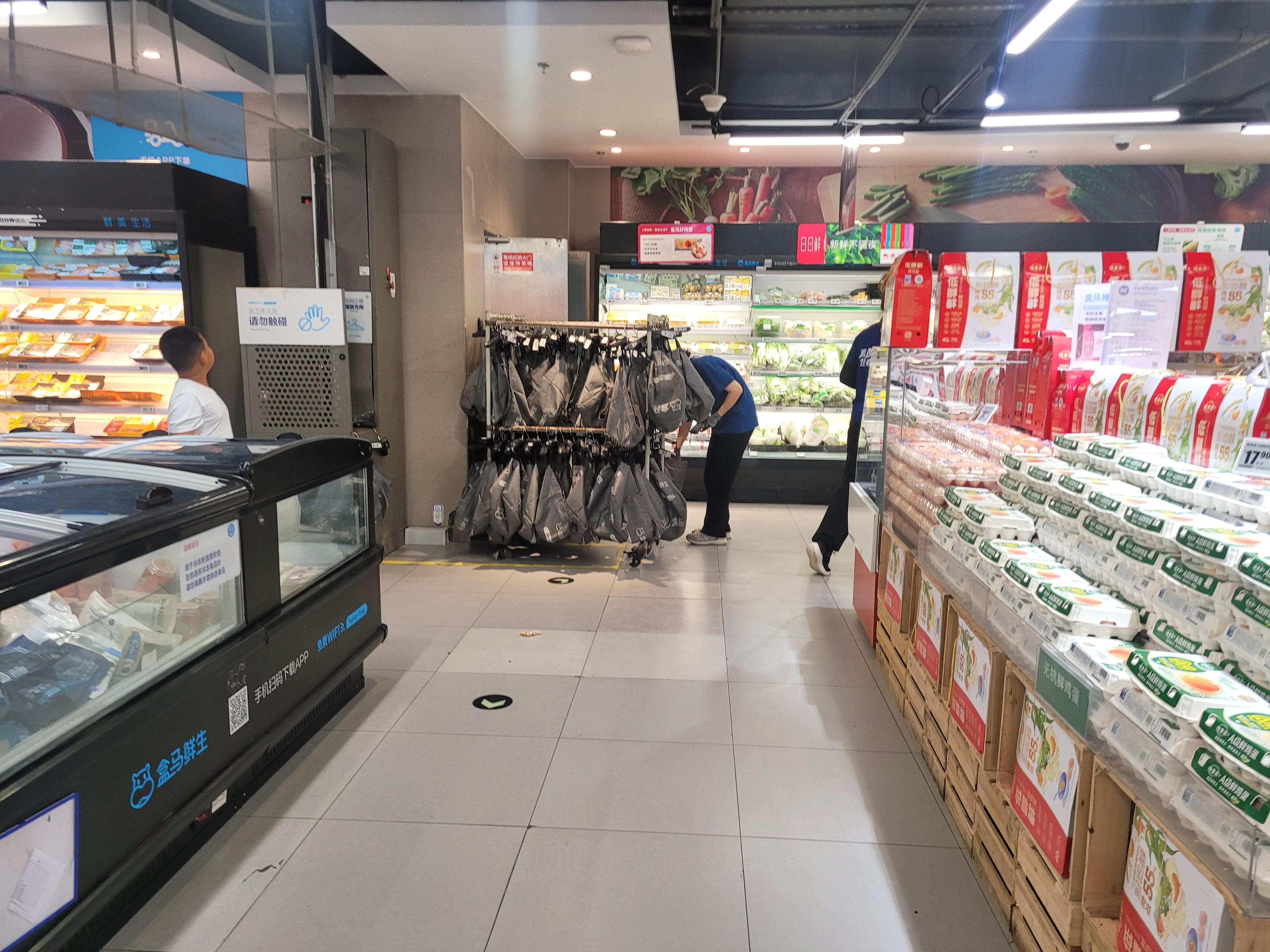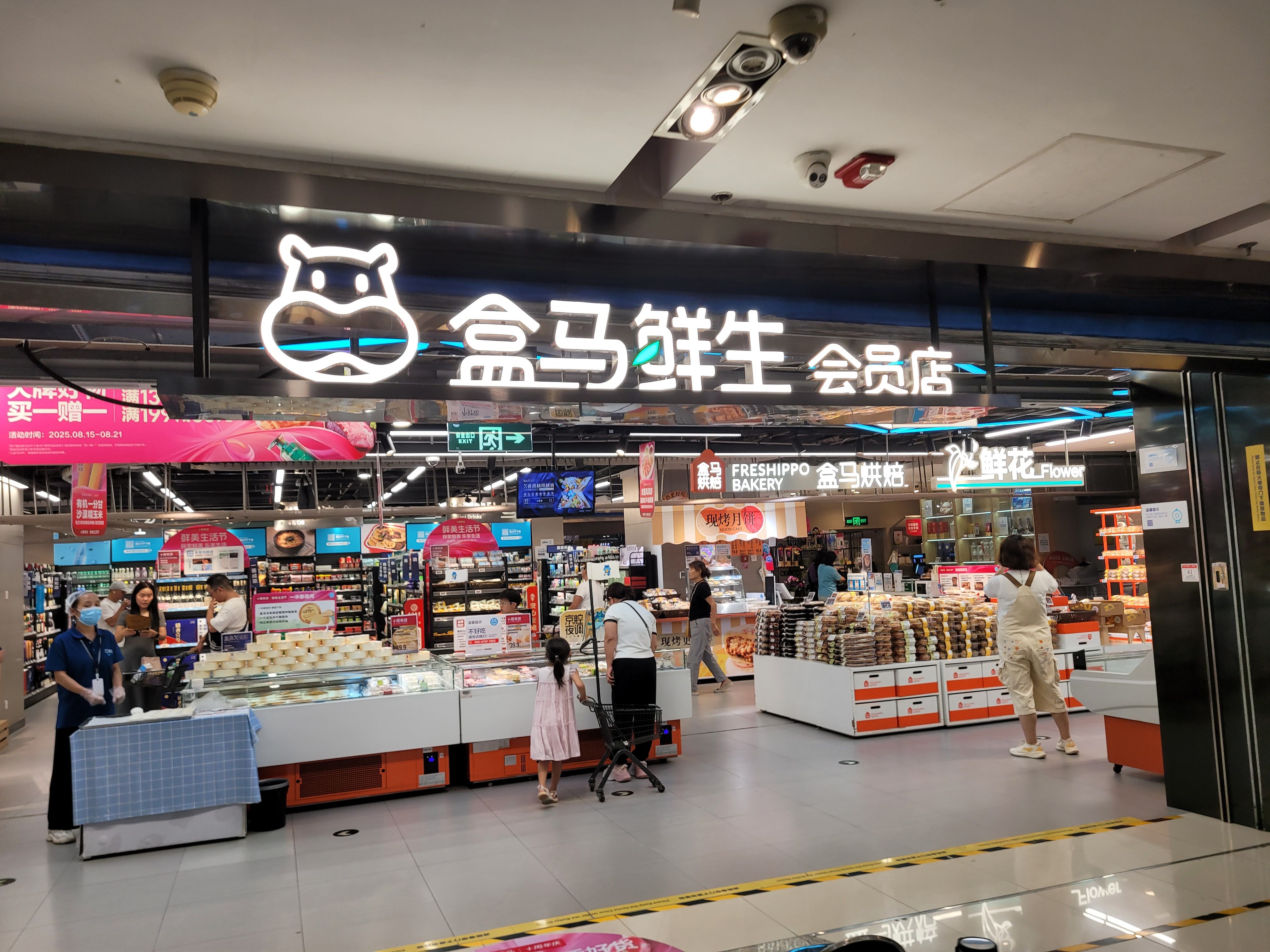 제가 방문한 곳은 허마셴성 Xinhuoguan점입니다. 대형 쇼핑몰 안에 입점해 있었고, 매장 규모는 일반 SSM보다 조금 큰 정도였습니다. 입구에서는 허마셴성의 시그니처인 하마 캐릭터 로고가 눈에 띄었습니다.