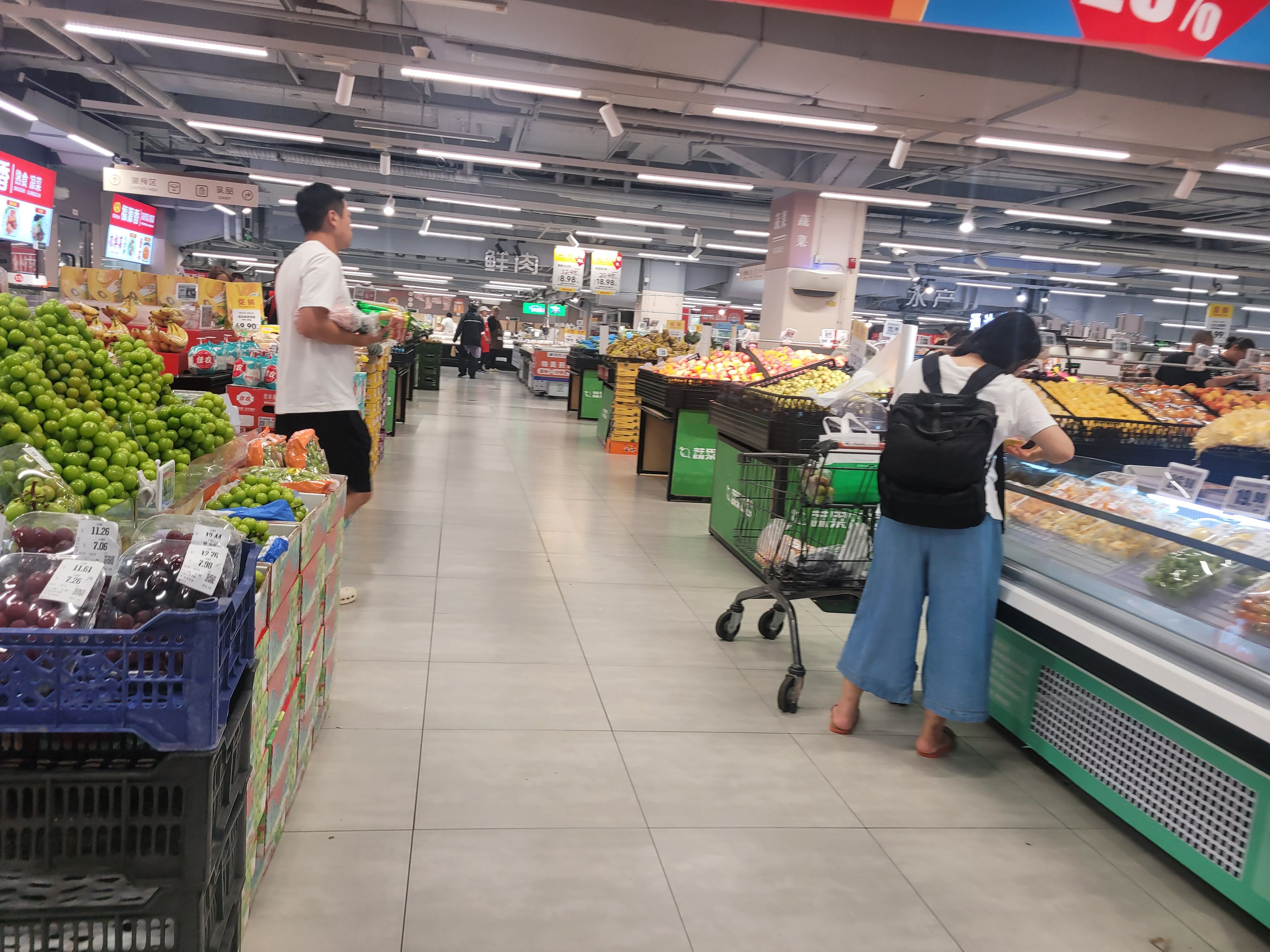 제가 방문한 베이징의 Wumart 매장은 국내 대형마트와 비슷한 구조로, 넓은 매장 안에 채소, 과일, 공산품, 생필품 등 다양한 상품이 진열되어 있었습니다.